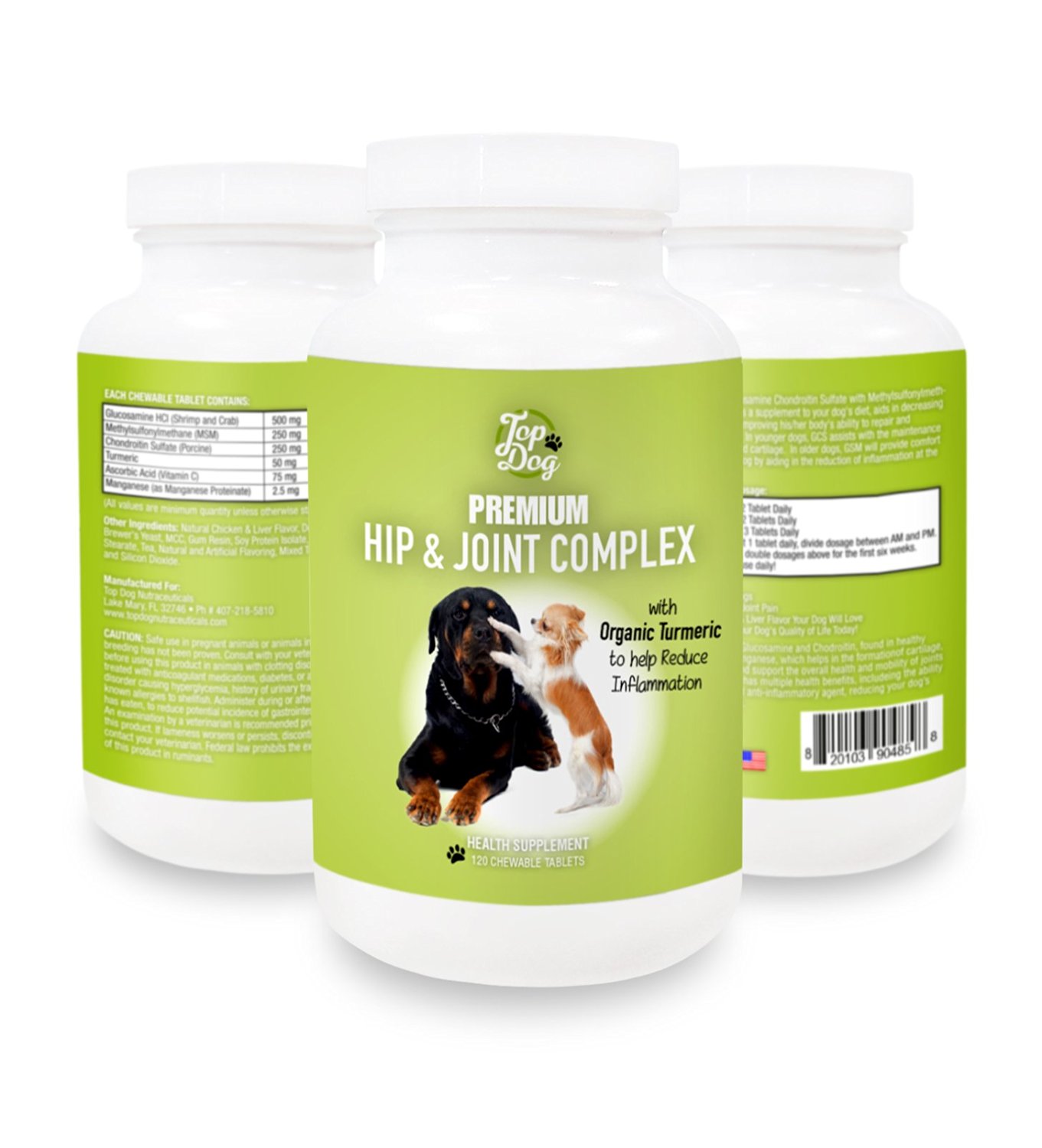 “Top Dog Premium Hip & Joint Complex is different from almost all its competitors because it contains organic turmeric, a natural herb which, among many other things, acts as a powerful anti-inflammatory agent, providing additional pain relief for suffering dogs. We also improved the flavor of the chewable tables. The flavor is chicken and liver, a flavor that is very popular for dogs.” said Troy Larsen, a representative from Top Dog Nutraceuticals.