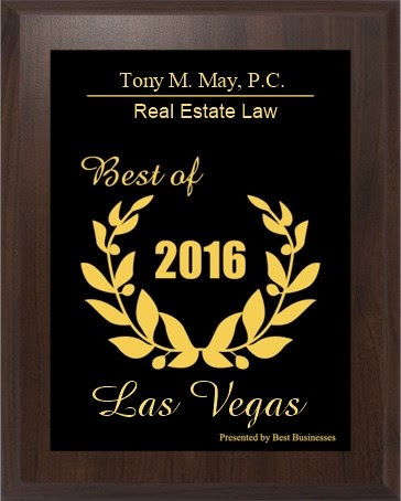 Las Vegas,NV — Tony M. May, P.C. has been selected for the 2016 Las Vegas Small Business Excellence Award in the Real Estate Law classification by the Las Vegas Small Business Excellence Award Program.
