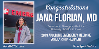 ATLANTA, Ga. (July 10, 2019) – ApolloMD, a multispecialty physician, APC and practice management services group, is honored to announce the recipient of the second annual ApolloMD Emergency Medicine Scholarship, Jana Florian, MD.