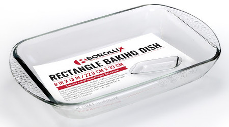 Borolux Bakeware states that all of their products, such as the 9x13 baking dish, are made in the United States, another fact that customers find to be very appealing. One customer states that this is the main reason she purchased the dish, and that she was pleasantly surprised by the high quality of the thicker glass.